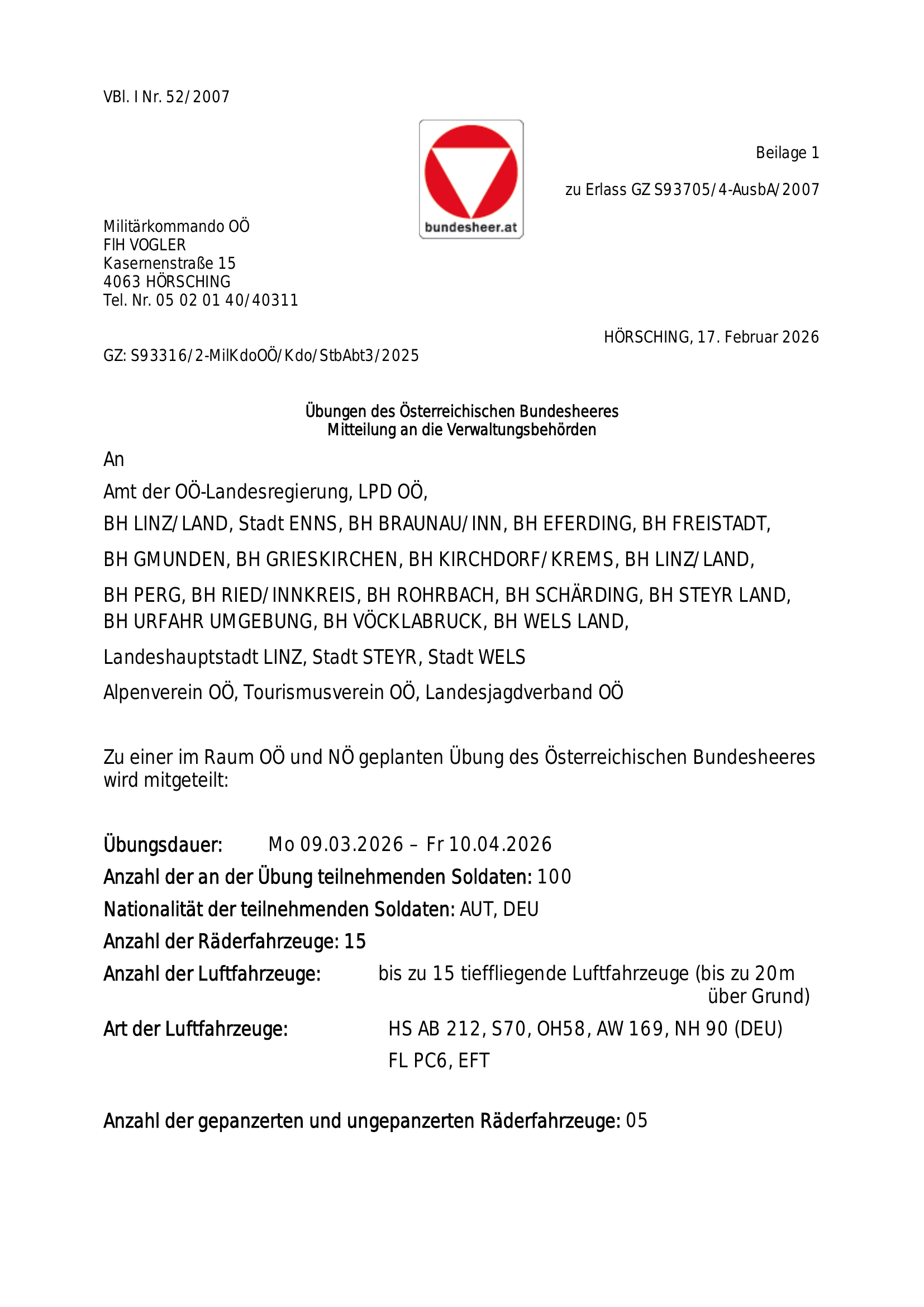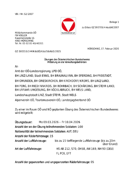 Luftstreitkräfte-Übung 09.03. - 10.04.2026